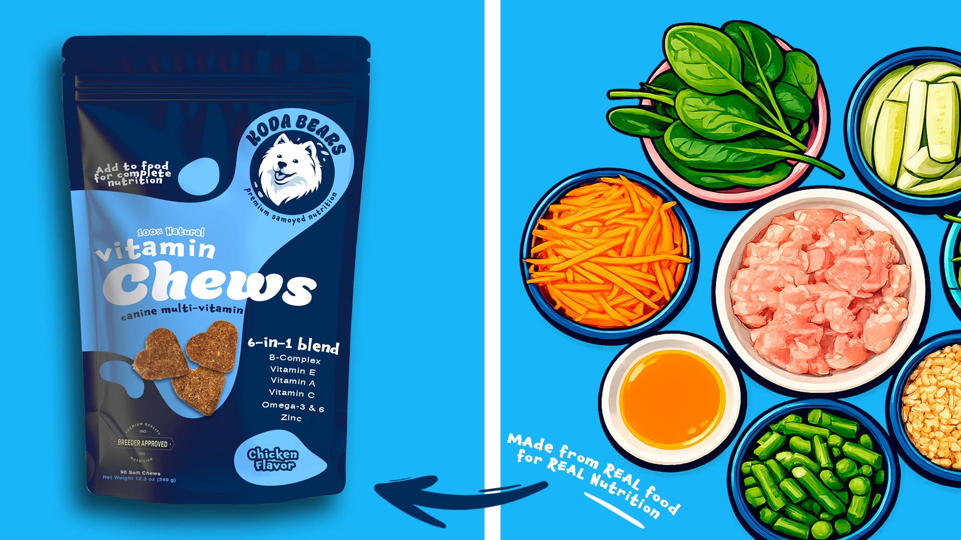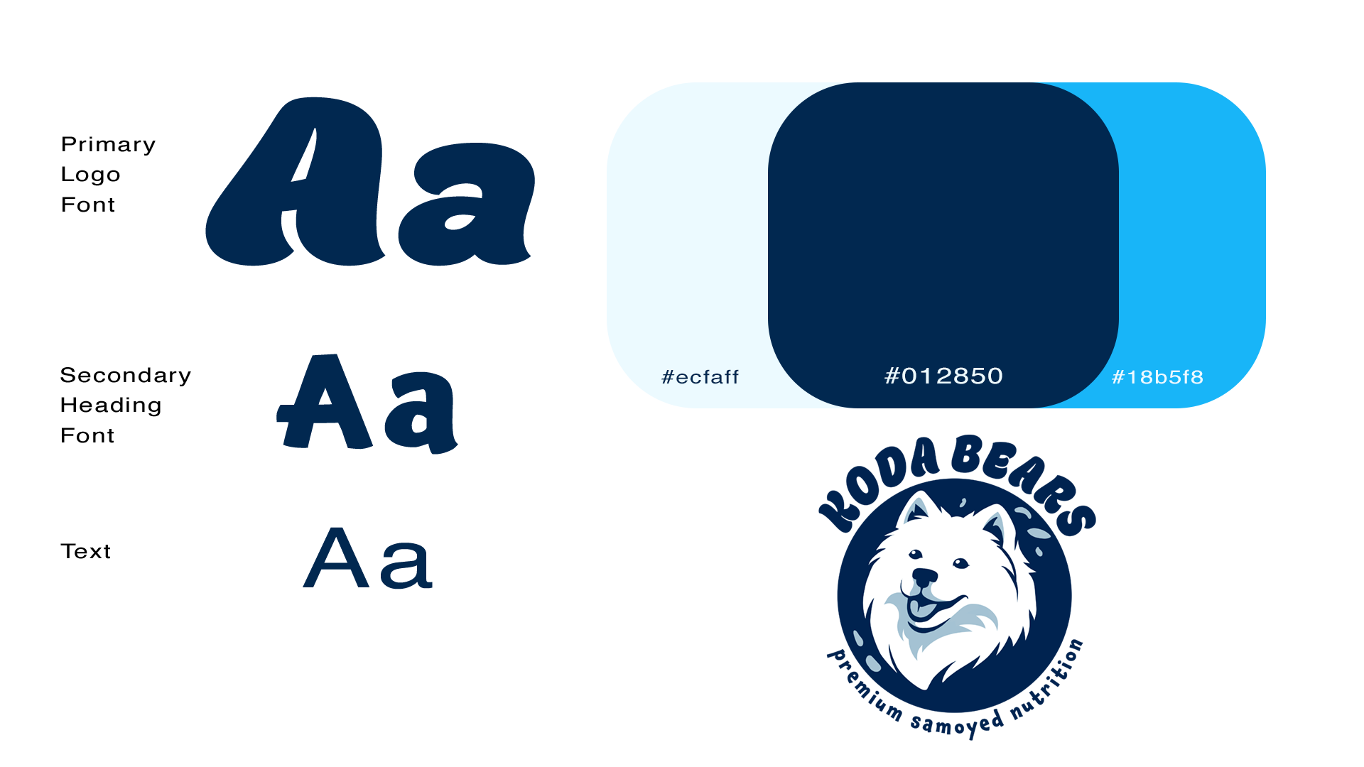 Koda Bears occupies a unique niche in the pet food market. The brand creates supplements for the Samoyed Breed and functions as an advocate for home-made, natural diets, while providing the critical supplemental bridge. My design work reflects this "clean-label" philosophy, using a visual language that feels transparent, educational, and premium. The brand focuses on the purity of home-prepared meals.