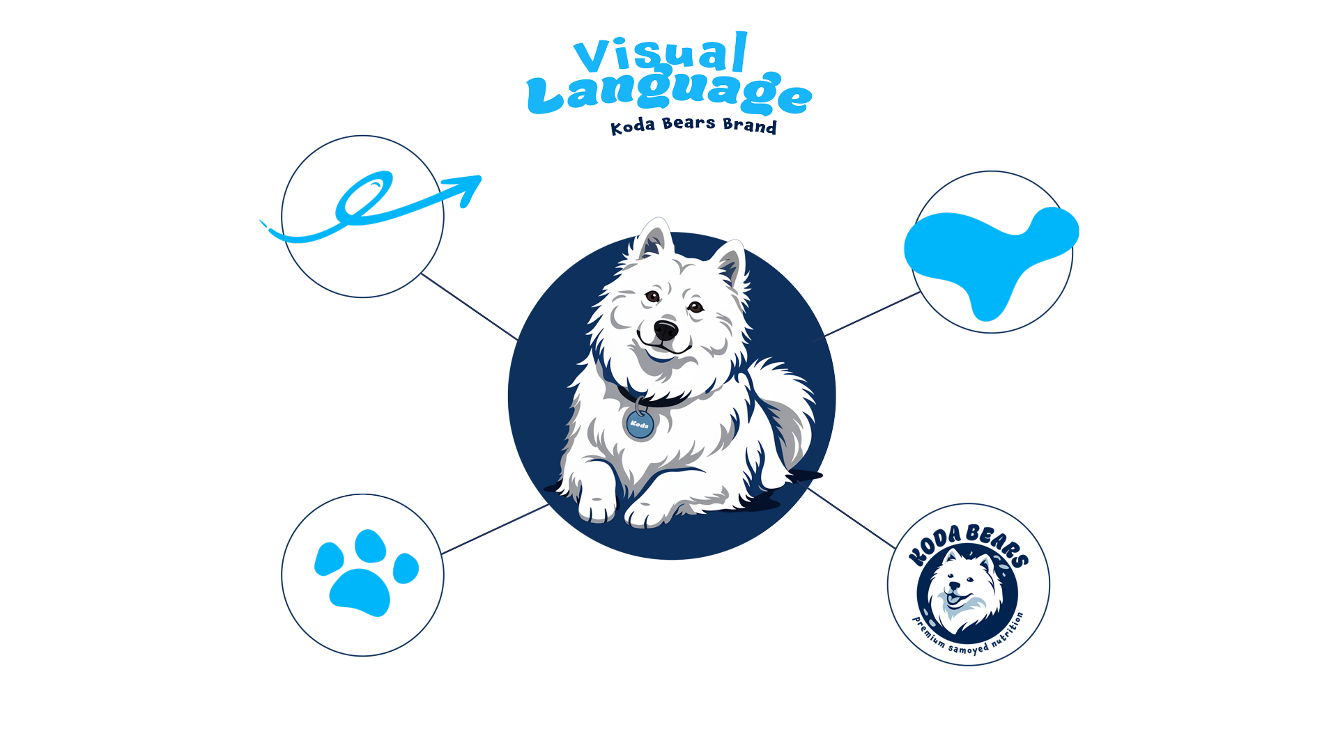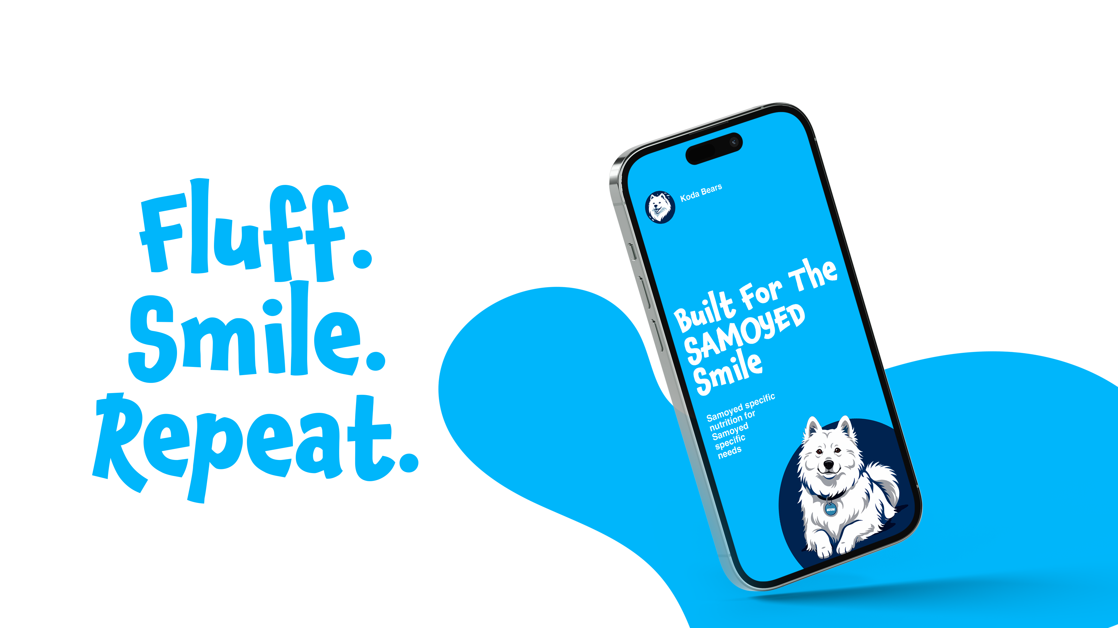 The Brand was conceived by owners of real Samoyed dogs. To elevate their passion into a commercially authoritative supplement brand, I utilized the owners' real Samoyed, Koda, as the central figure, and I established immediate trust within a niche community of dog enthusiasts. The final identity balances the warmth of a "lovable companion" with the clean, professional aesthetic required for the wellness industry.